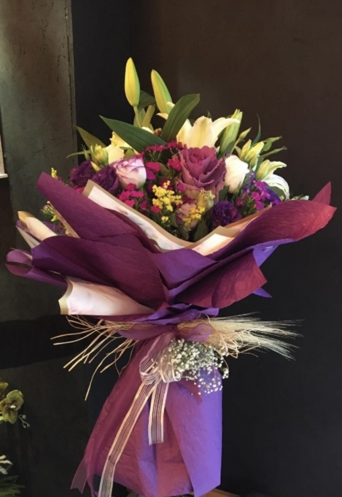 Buket LF-64 Tasarım 'da kullanılan çiçek ve aksesuarlar stok durumuna göre farklılık gösterilebilir.