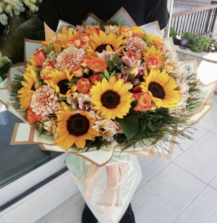 Ay Çiçeği,Anastasia,Astomerya,Turuncu Güllerden Buket