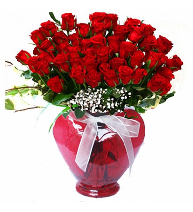Kalp Vazoda Kırmızı Güller