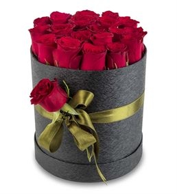 Siyah Silindir Kutu İçerisinde Kırmızı Güller