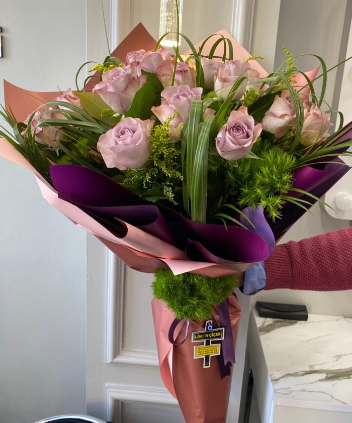 Lila Gül Buketi LF-93 Tasarım 'da kullanılan çiçek ve aksesuarlar stok durumuna göre farklılık gösterilebilir.