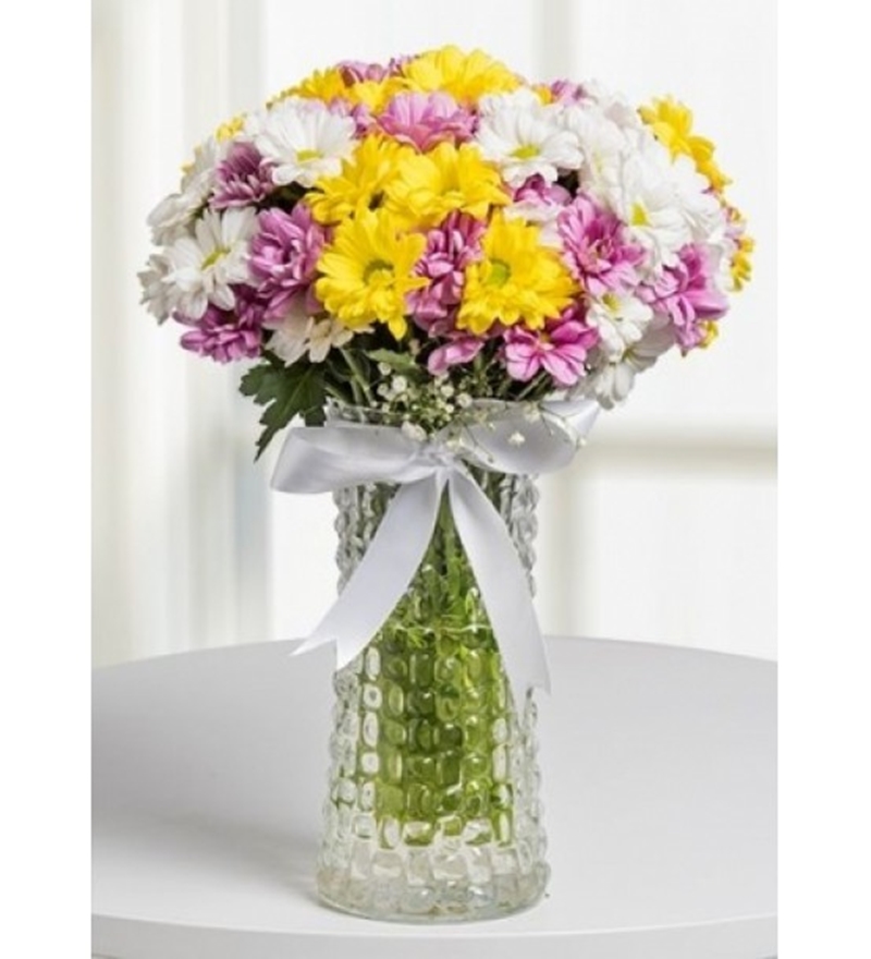 Renkli Gül Arajmanı LF-263 Tasarım 'da kullanılan çiçek ve aksesuarlar stok durumuna göre farklılık gösterilebilir.